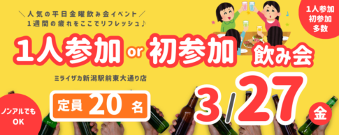 新潟の20代・30代・40代の社会人を中心とした定期的に開催されるイベントを楽しむ社会人サークルです。 新潟でイベント・飲み会・婚活・出会いイベント・朝活・スポーツイベントを行っています。