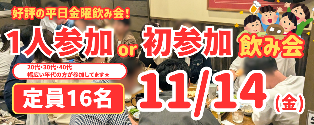 次回の1人参加or初参加飲み会は、11/14(金)の開催です(#^.^#)