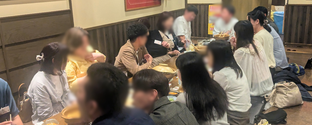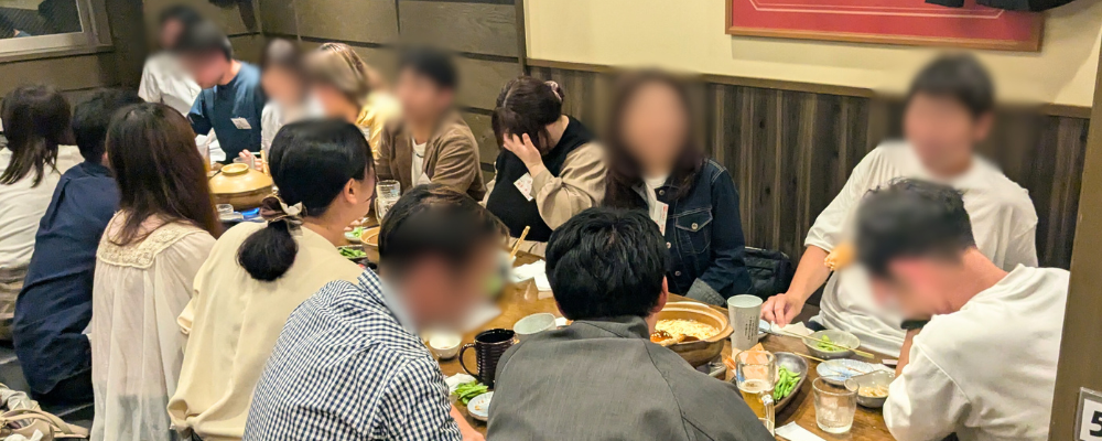 乾杯前はどこか緊張感もありましたが、飲み会イベントがスタートした途端、年齢の壁も感じさせないほど皆さんが自然と打ち解け、笑顔あふれる楽しい交流の場になりました♬