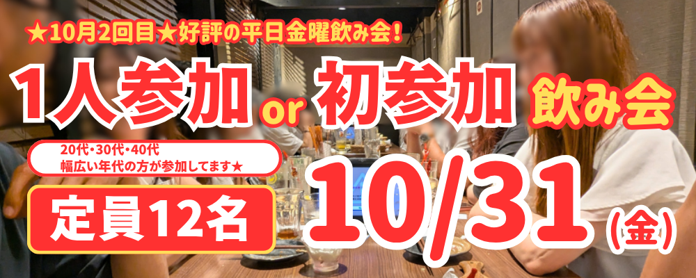 次回の飲み会イベントは10/31(土)1人参加or初参加飲み会🍻✨