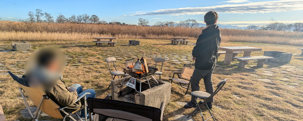 阿賀野川津島屋緑地の開放的な雰囲気と、焚き火がベストマッチ🔥✨
