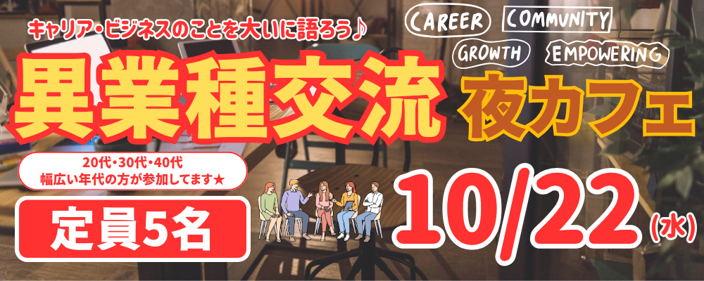 <キャリア><ビジネス>のトピックに特化したカフェイベント・「異業種交流カフェ会」です(^^♪
